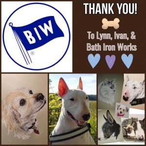 Last month, Lynn and Ivan teamed up with the employees of Bath Iron Works and held a raffle for a piece of Lynn’s custom artwork. Lynn, Ivan, and all of the WONDERFUL employees at Bath Iron Works raised $717 for the bullies in our care! We cannot thank everyone enough for the LOVE and GENEROSITY that was shown to help the Blue Ridge Bull Terrier Club Rescue bullies! You are all greatly APPRECIATED! ??