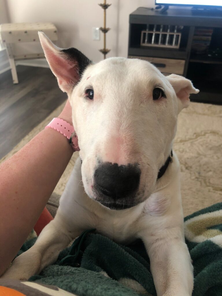 Señorita Sarah came into rescue in February 2021 at the age of 12.5. Sarah’s dad had died several years before and his brother had taken her to live at his farm. Sarah lived outside on the farm until she went into boarding around December 2020. Sarah’s uncle had told the boarding facility that he was considering euthanizing her but was hoping they might be able to find a home for her. Sarah was placed with an amazing couple who has been spoiling her ever since. Due to Sarah’s age, we agreed to keep her as a “fospice” dog and cover all the medical bills for the rest of her life. Unfortunately, last week Sarah became very ill. She was lethargic, refusing to eat, and vomiting. She was taken to the hospital where she was diagnosed with a severe case of pancreatitis along with an enlarged heart and fluid in her chest. Sarah was hospitalized for several days of further diagnostics and IV fluids trying to get her stabilized. When that did not work we authorized a plasma transfusion as a last ditch effort to try and save her. The transfusion did not give her the relief that we had hoped for. Sarah’s fospice family picked her up from the hospital and took her home for one last day of spoiling with the intention of giving her peace the following day. She enjoyed one last car ride with the windows down, plenty of snuggles, and passed away on her own terms that evening. We take pride in the fact we, along with AMAZING fospice parents, are able to help give older dogs so much love and compassion for their final months and years by providing the extra, and often costly, medical care that not everyone can afford for a senior dog. Just this one hospitalization for Sarah was $5663.78. We hope to be able to continue to offer this for those that find their way to us in their later years. Helping Bull Terriers Worldwide/Save Our Siblings! has graciously donated $1000.00 towards Sarah’s care and we have also contacted Rescue Welfare Trust Fund of The Bull Terrier Club of America for help with funding. We have had many expensive cases over the last months that have depleted our account. We are looking to the bull terrier community for help with donations that will allow us to provide the level of care that we want for those in our rescue. If you would like to make a donation towards Sarah’s medical care or towards the care of those that will come after her, our PayPal is brbtcinc@gmail.com and our Venmo is the same address.