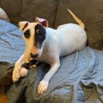 Bane is a male bull terrier who is about 17 months old and weighs approximately 51 lbs. He is a very sweet, loving boy but is also a young bully who is easily excitable and has a lot of energy. That young bull terrier energy is proving to be a bit overwhelming for his current foster family so we would like to find him his furever home as soon as possible. He is overly friendly with other dogs and doesn’t quite yet know his manners with them in that he wants to just play with any dog regardless if they want to play or not. He will take a warning after a few times but eventually try to go in for another play attempt. He is crate trained and potty trained but if you are in the same room with him while in his crate, he will bark. He didn’t do this in his previous home or the first few days in his foster home so we feel that this may be related to boredom or possibly getting attention when he is barking while attempting to stop him from doing so. He would do great in a home with another dog of similar size and energy level. He also would do best in a home where he has structure and routine and has mental stimulation/enrichment activities. He does tend to jump up at a person who he wants to greet but this can be managed by asking him to sit or not allowing him that close initially. Due to this and his general excitability and potential to knock down a child accidentally, kids 12 and older. He knows basic commands including sit, down and roll over. No cats or smaller animals. Bane is a talker and can be quite entertaining to listen to. If you live within 6 hours of Aston, PA and can provide the home Bane deserves, please either message our main inbox or Lisa Taubman Blount directly