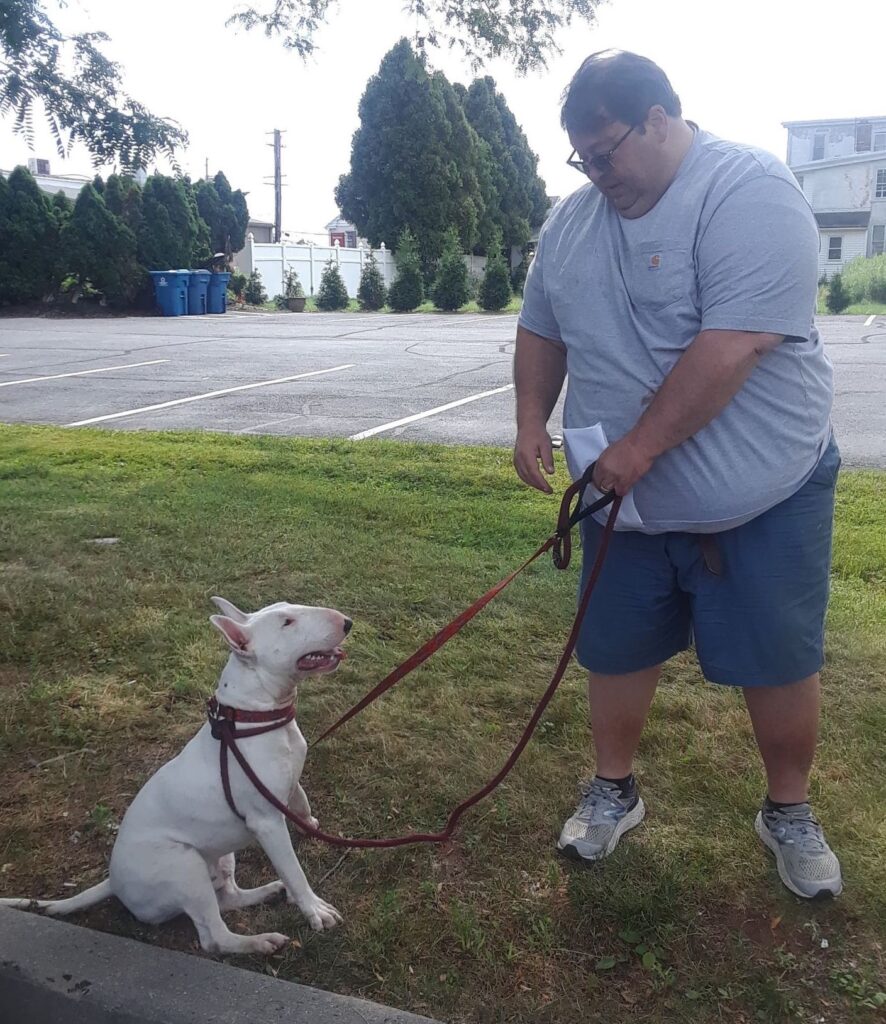 Bane spent the first several months of his life with the same family. There wasn’t a question if he was loved in that home as his human mom clearly cared for him and about him enough to try to save him by giving him up. Issues had arisen in the home where the woman had to get a protective order and move quickly out of the home for her own safety. Bane was signed over to rescue and quickly moved out of the area as there was concern that the other adult in that home might try to sell him to some random person just to get money. He went to foster for a short time so that we could make sure all the information we were told about him was accurate. Sure enough, it was. Bane is a very loving, dog friendly boy who just wants to play and be loved. Once we posted that we were looking for a furever home for Bane, a gentleman named Timothy reached out. He had recently lost his bull terrier Frank and was struggling with his loss. It turns out that Timothy and his wife Rebecca live on a 28 acre farm with a huge fenced in area for dogs to play. They are highly involved in rescue and have been for decades at varying degrees. Their love for all animals is very evident when talking with them. Yesterday, Bane met his foster-to adopt dad Tim and headed home to the farm to meet his new family. He will be able to burn off lots of his young energy while playing with his new four legged and two legged siblings. We could not have dreamed of a more appropriate and perfect home and family for Bane.