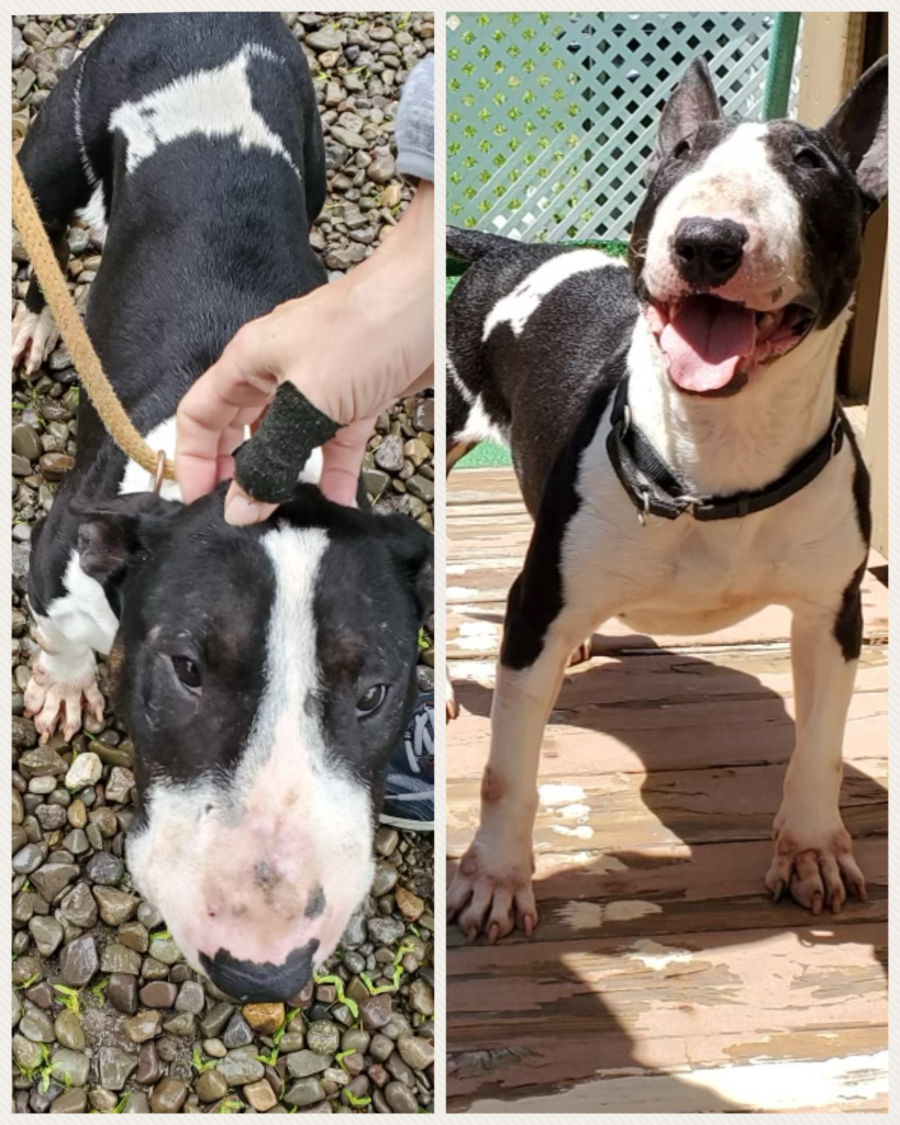 Below is a picture of her from the shelter and one from today after she was pulled from the shelter, went to her foster home and had a bath. It’s amazing what a difference there is between the two pictures taken less than a week apart.